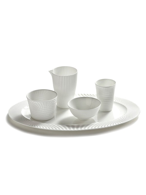Edelstes Fine Bone China Porzellan und ein schickes Design, das bietet die Serie NIDO der Designerin Ann van Hoey. In reinem Weiß und Pastellgrün gehalten, bietet das Geschirr eine perfekte Bühne für raffinierte Gerichte und Dekorationen. Die sehr elegante SERAX Geschirrserie beinhaltet Teller, Schüsseln und Tassen in verschiedenen Größen und Formen und dazu passende Gläser und Serviertabletts.