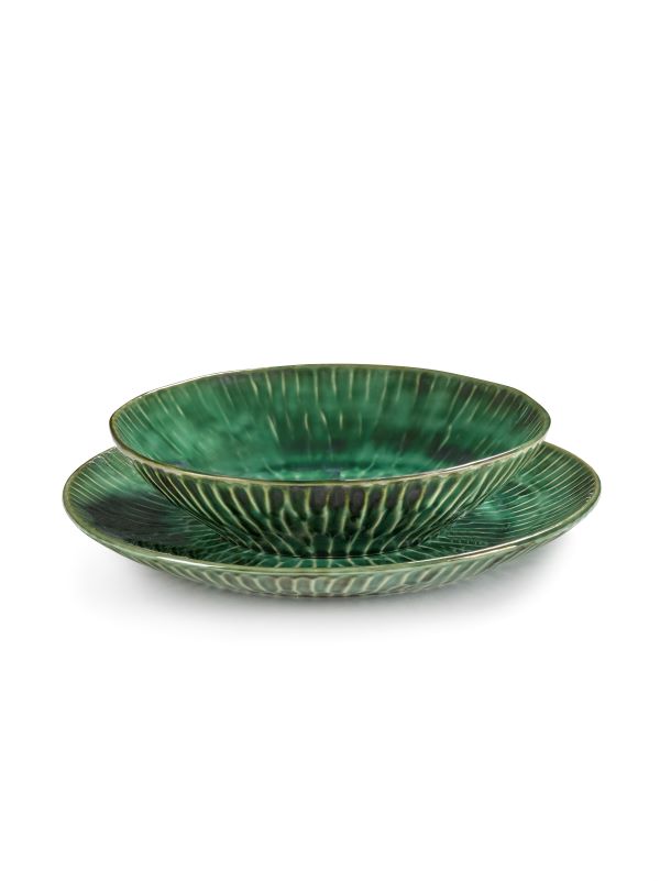 Entdecken Sie die faszinierende Geschirrserie VERDE LANZA aus Keramik, die exklusiv von Serax produziert und von Pascale Naessens mit viel Liebe zum Detail gestaltet wurde. Das leuchtende Grün verleiht jedem Teller und jeder Schale eine frische, lebendige Note und macht sie zum Blickfang auf jedem Tisch. Besonders beeindruckend ist die muschelförmige Struktur der Keramik, die nicht nur optisch begeistert, sondern auch perfekt zu kulinarischen Genüssen passt. Ob für ein festliches Dinner oder einen entspannten Brunch – diese Keramik bringt natürliche Eleganz und eine besondere Atmosphäre in Ihr Zuhause. Lassen Sie sich von der Kombination aus hochwertiger Handwerkskunst und stilvollem Design verzaubern!